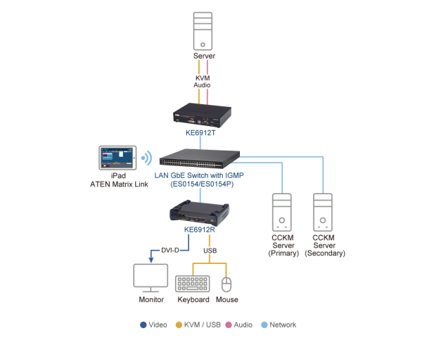• Centralized management software – KVM over IP Matrix Manager (CCKM) allows users to easily administrator all KE devices with an intuitive web-based GUI