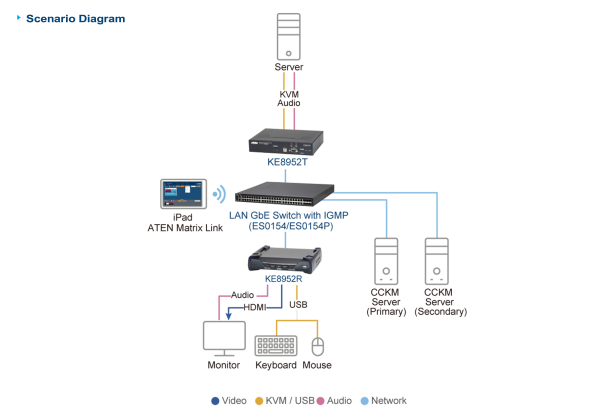 • ATEN Matrix Link – allows users instant link transmitters and receivers, and perform real-time port and profile switching on an iPad