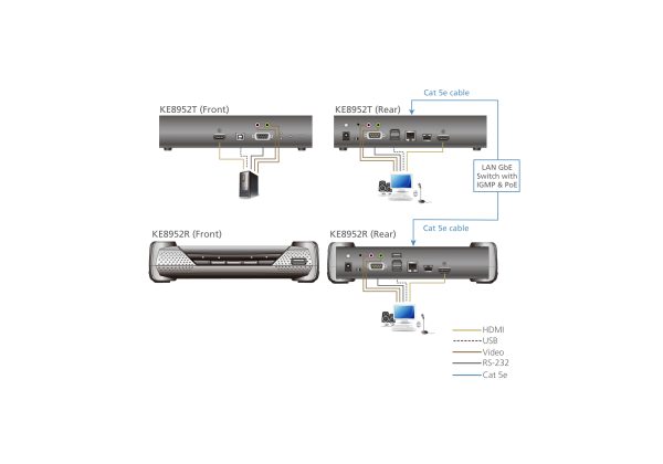 - 1x KE8952T 4K HDMI Single Display KVM over IP Transmitter with PoE