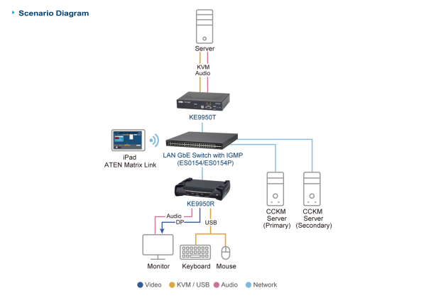 • Centralized management software – KVM over IP Matrix Manager (CCKM) allows users to easily administrator all KE devices with an intuitive web-based GUI