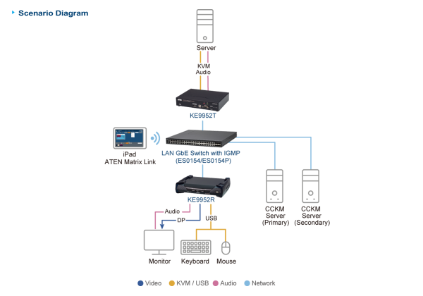 When integrated with the CCKM, the KE9952 supports more advanced features such as boundless switching, “Push” and “Pull”, video wall and multi-display setups, and profile scheduling that provide uninterrupted access with quick and easy control tools to use the KE9952 over a network.